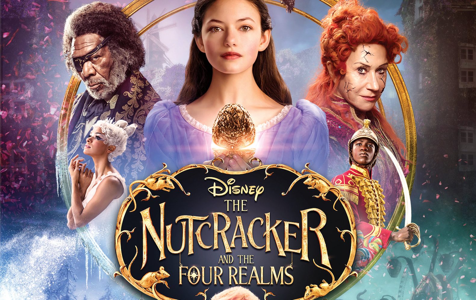 In “The Nutcracker and the Four Realms,” Clara travels along a golden thread, presented at Drosselmeyer’s (Morgan Freeman) annual party, eagerly searching for a one-of-a-kind key that will unlock a music box that holds a priceless gift. When she enters a mysterious parallel world, Clara encounters a Nutcracker soldier named Phillip (Jayden Fowora-Knight), a gang of mice and three Realm regents, including the Sugar Plum Fairy (Keira Knightley). Ultimately, she must brave the ominous Fourth Realm, home to the tyrant Mother Ginger (Helen Mirren), to retrieve the key and return harmony to the unstable world.