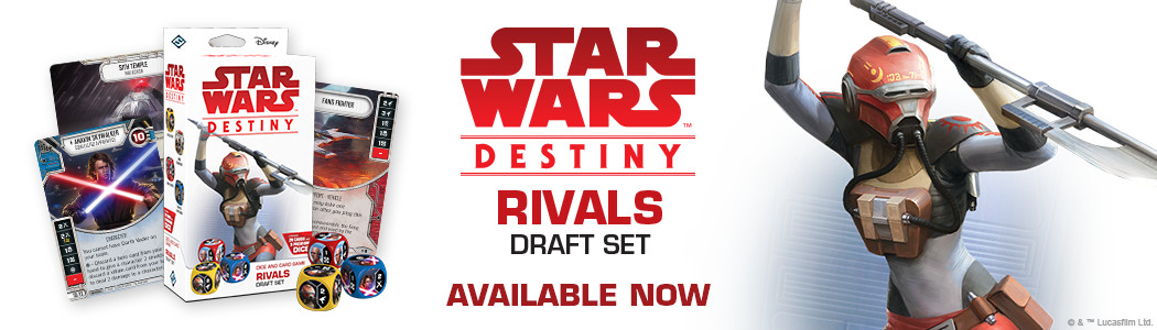The new Rivals Draft Set for Star Wars: Destiny is now on sale and are available from your local retailer or online through Amazon or on Fantasy Flight Games for $14.95.