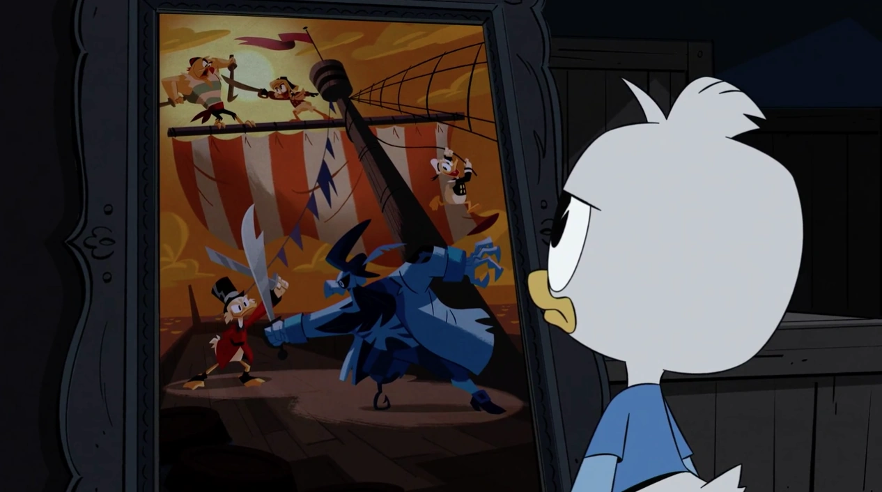 Much of season one focuses on the impact of Della Duck’s disappearance. She is the triplets’ mother and Donald’s twin sister. Scrooge and Donald won’t talk about her, and Webby mentions that she can’t find a single thing about Della in the news, in books, or anywhere. Dewey Duck becomes frustrated by this because he and his brothers know nothing about thier mother. He decides to start researching her disappearance, with Webby’s help, and learning more about her. When his brothers learn, they first call him out for keeping his quest a secret, and say if they’re going to find out about their mom together.
