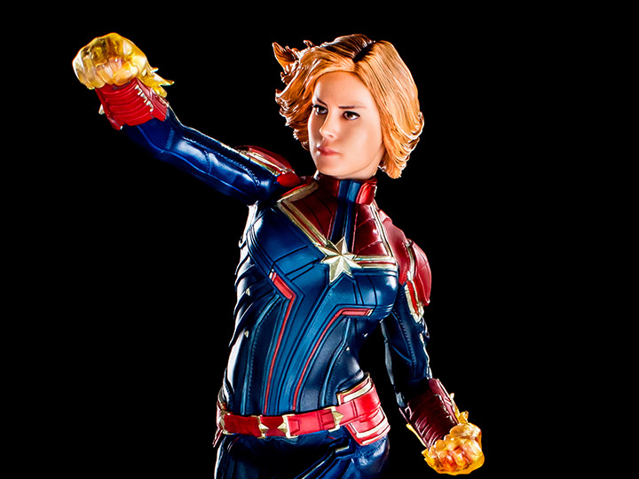 This Battle Diorama Series Art Scale 1:10 line statue is based on the likeness of actress Brie Larson as she appears in the movie Captain Marvel. Captain Marvel comes complete with a fully detailed battle base that will display nicely with other Battle Diorama statues.